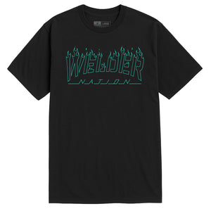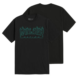 The Burner Tee keeps it simple with a clean Welder Nation hit that looks like it was pulled straight from a stack of fresh beads. Flames across the top, sharp linework below, and a design that feels right at home in any shop.